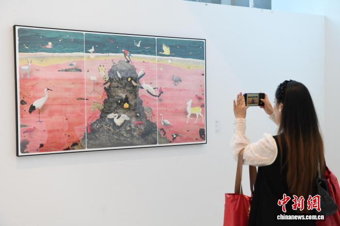 图为观众在四川美术学院参观全国优秀美术作品展览。中新网记者 周毅 摄